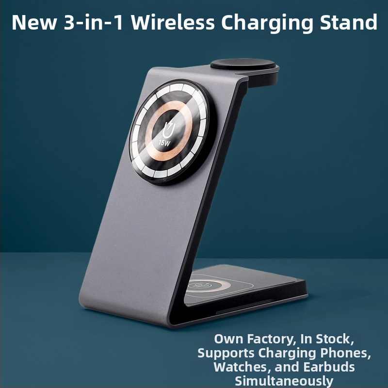 Încărcător wireless MagSafe 3-in-1 pentru telefon, ceas și căști; aliniere magnetică; PD rapid; 15W maxim