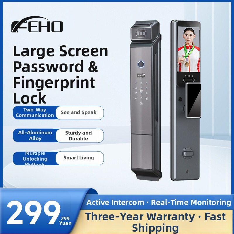 Încuietoare inteligentă cu recunoaștere facială 3D, acces prin amprentă (300 de șabloane), interfon vizual cu vizor, impermeabilă, deblocare de la distanță — model S1
