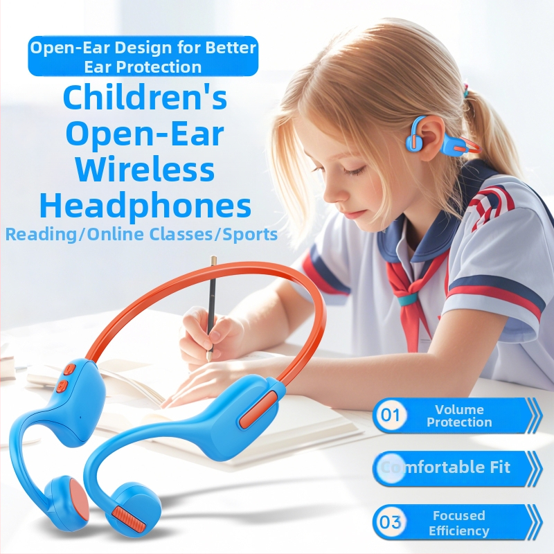 Căști pentru copii cu conductivitate osoasă pentru sport, cu 8 GB memorie pentru descărcare/lectură, Bluetooth 5.3, IPX5 rezistente la apă, autonomie 4–8 ore.