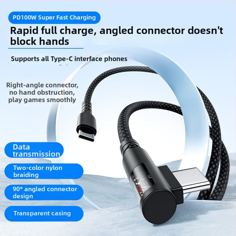 Cablu de date Type-C cu cot, împletit, 100W putere maximă, conector unic
