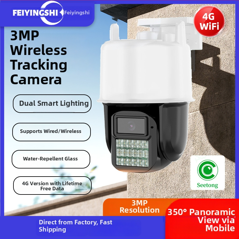 Cameră de supraveghere cu vedere nocturnă și zoom, conectivitate Wi‑Fi/4G, utilizare în exterior și monitorizare de la distanță, funcție de alarmă, interval de temperatură -20°C până la 50°C