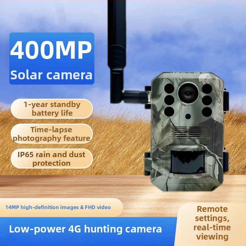 Cameră de supraveghere exterioră, rezistentă la apă, cu vedere noctură infraroșu, senzor de 4MP, autonomie baterie de 6 luni, panou solar inclus și 3 baterii 18650