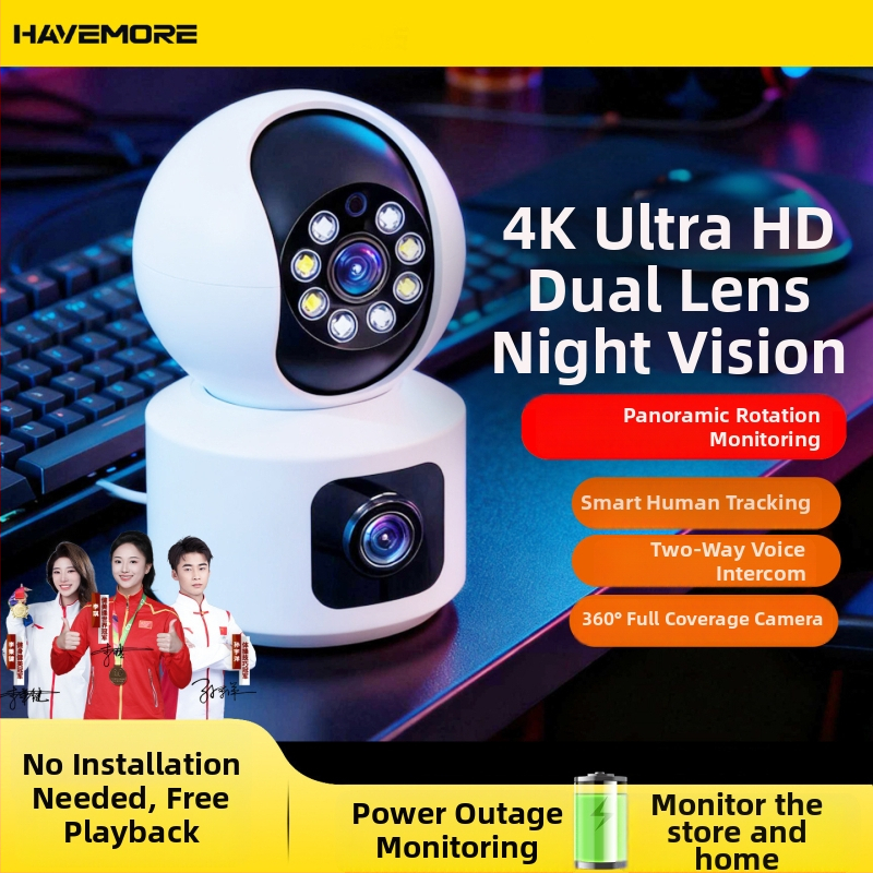 Cameră de supraveghere pentru interior, cu panoramă 360° și vedere de noapte — Haweiman, alimentare 5V, carcasă ABS, -10°C până la 55°C