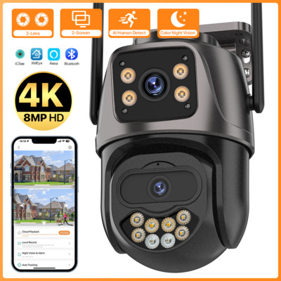 Cameră Wifi 4K 8MP PTZ Viziune nocturnă în aer liber Ecran dublu Detecție umană Protecție de securitate CCTV Supraveghere Cameră IP iCSee