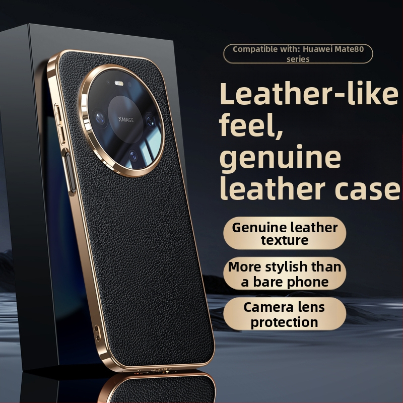 Carcasă de protecție pentru Huawei Mate80/Pro din piele naturală, textură pietră, finisaj electroplating, disipare a căldurii și protecție anti-cădere