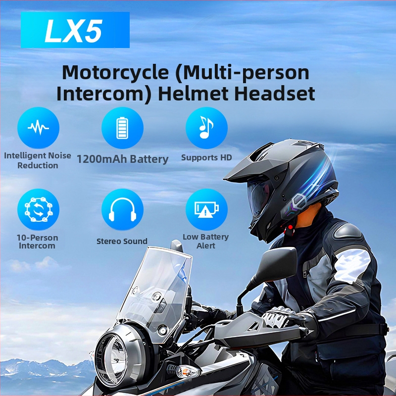 Casca de motocicletă headset cu Bluetooth, intercom mesh pentru 10 utilizatori, audio HiFi, greutate 70 g, difuzoare de 30 mm