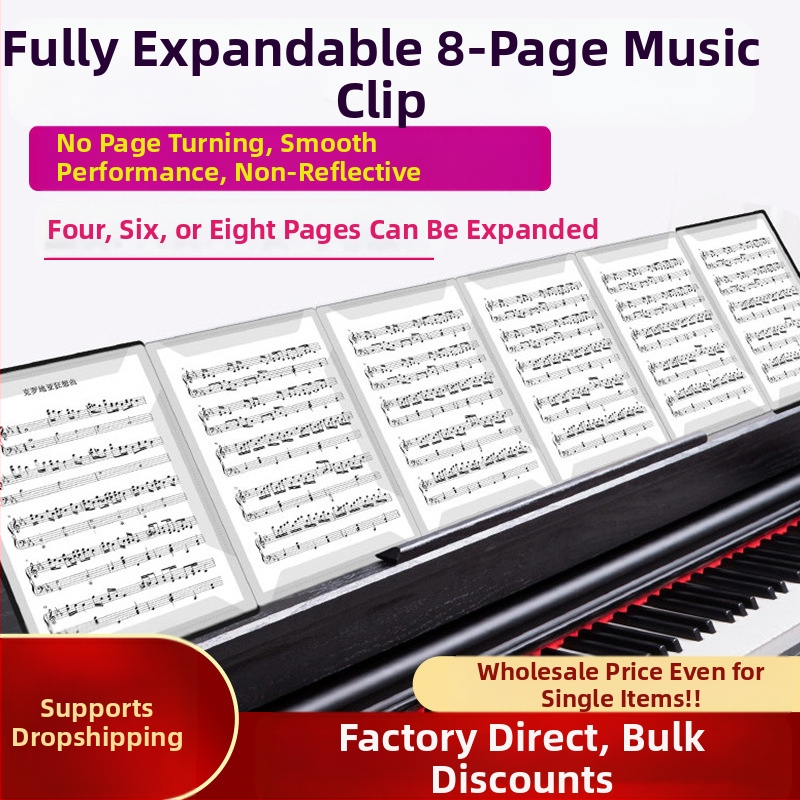 Clip pentru partituri, ABS, 8 pagini, care se extinde la 6 pagini, ambalat într-o cutie de carton, brand Aegean music