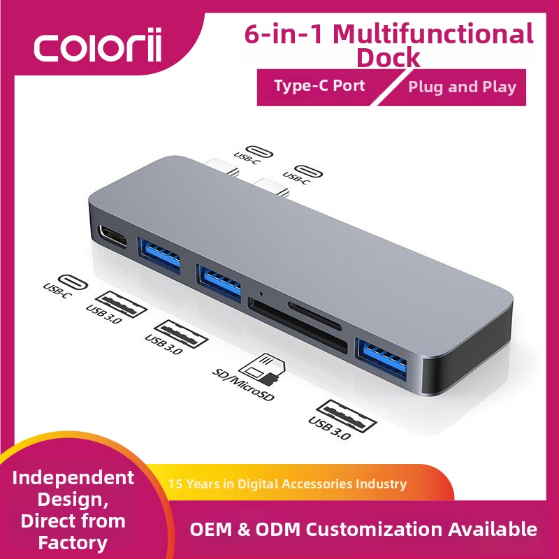 Colorii stație de docking Type-C Thunderbolt 3 6 în 1 pentru laptopuri și MacBook Pro (40 Gbps, USB-C, fără sursă externă)