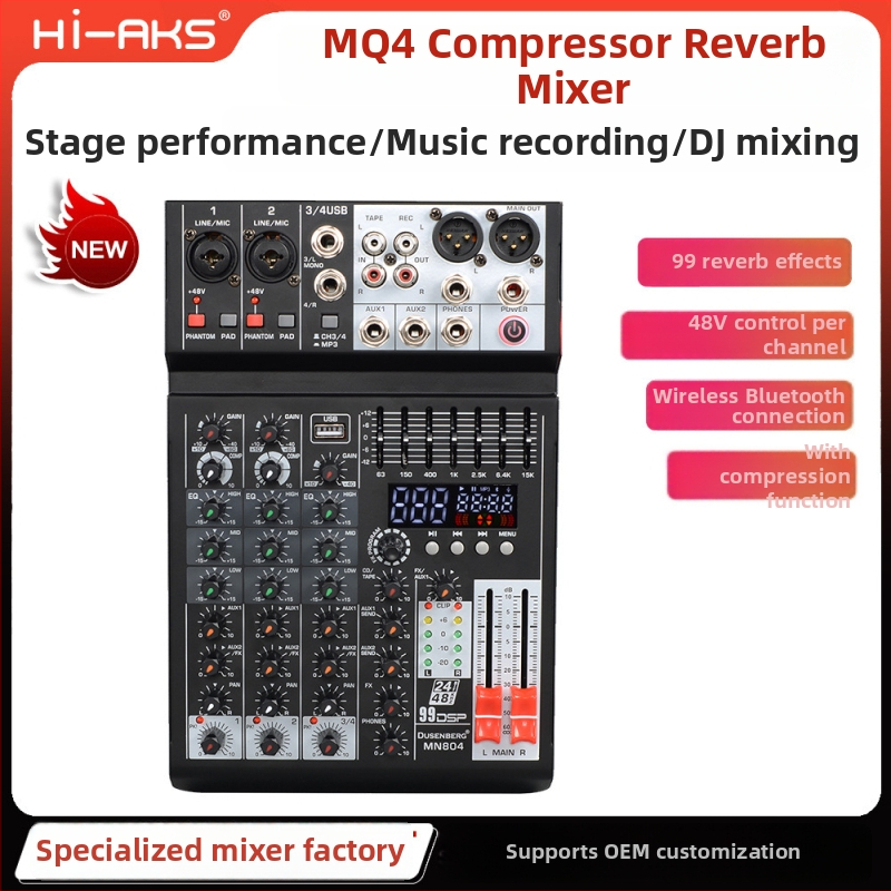 Fh Mixer pe 4 canale cu compresor încorporat 99DS, USB și Bluetooth, pentru scenă, nunți și utilizare acasă