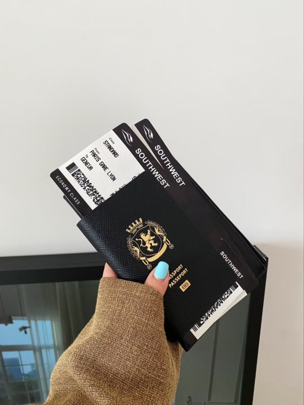 Geantă pentru telefon cu compartiment pentru pașaport și carduri, piele naturală de primă calitate, formă verticală pătrată, închidere cu fermoar, unisex