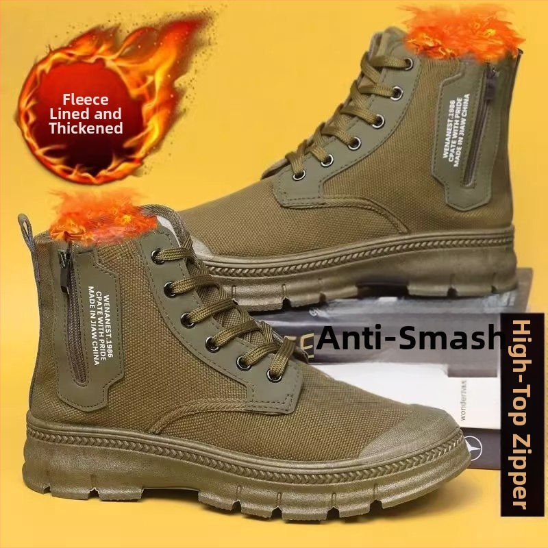 Ghete de protecție pentru muncă, căptușite cu fleece, rezistente la uzură, ușoare, înalte, cu talpă vulcanizată pentru șantier
