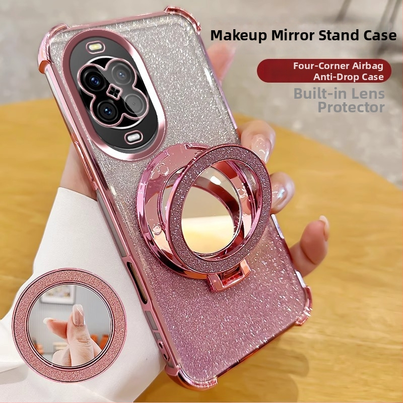 Husă Huawei Nova14 cu sclipici, husă moale cu suport oglindă de machiaj și folie pentru obiectiv, protecție completă anti-cădere (Nova14; sclipici; suport oglindă; folie obiectiv; protecție completă)