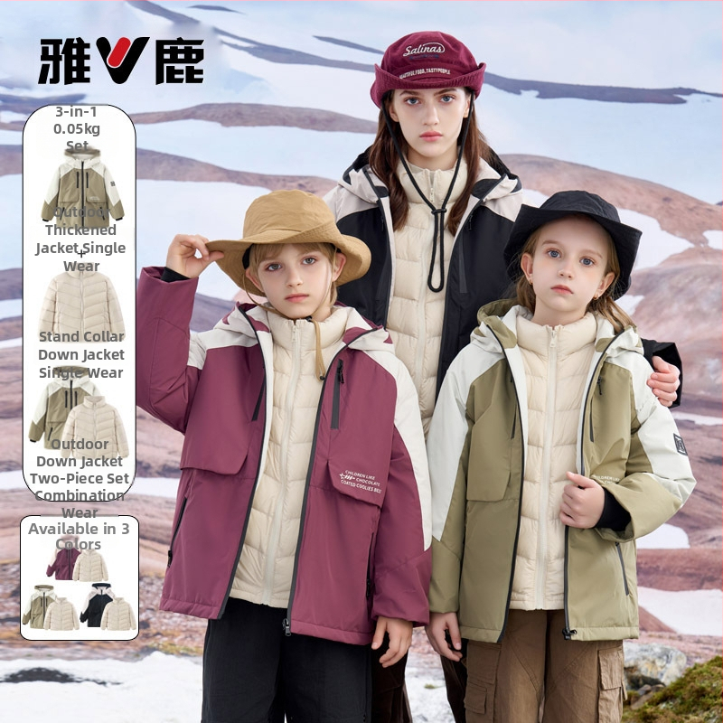Jachetă de copii Yalu 3-în-1, unisex, exterior nylon, umplutură din puf de rață alb, 81–85% conținut de puf, pentru vârsta 3–8 ani, primăvara 2024