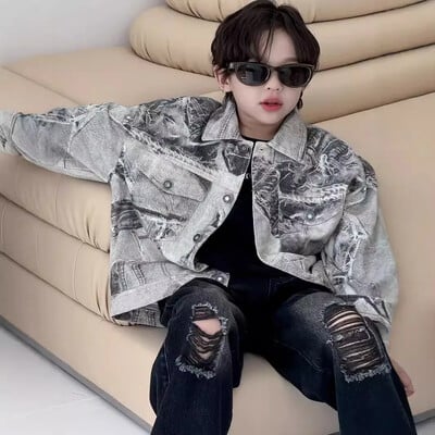 • Jachete pentru copii, toamna 2024, noi băieți, îmbrăcăminte coreeană pentru copii, cu imprimeu liber, jachetă la modă, jachetă scurtă din bumbac