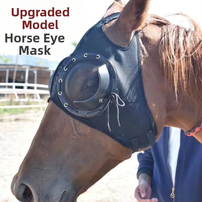 Mască de ochi pentru curse de cai, husă pentru ham, mască de ochi rezistentă la vânt, mască de ochi pentru curse de viteză cu mască de ochi din plasă, husă anti-trahom, husă pentru cap de cal, albastră