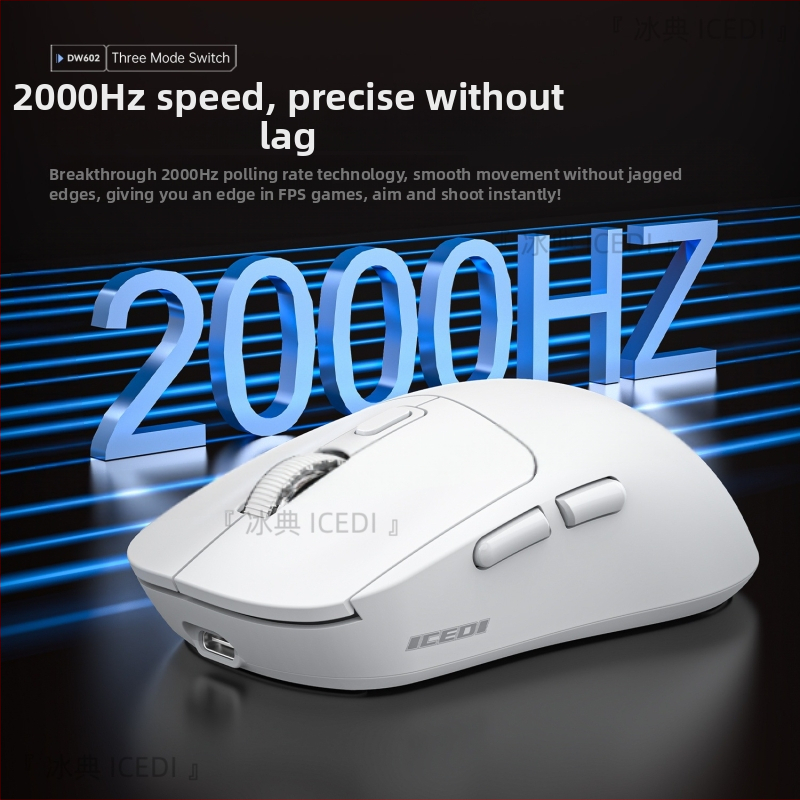 Mouse de gaming wireless cu 3 moduri, macro hardware, 2000 Hz, 12000 DPI, programabil, încărcare Type-C, Bluetooth 2.4 GHz