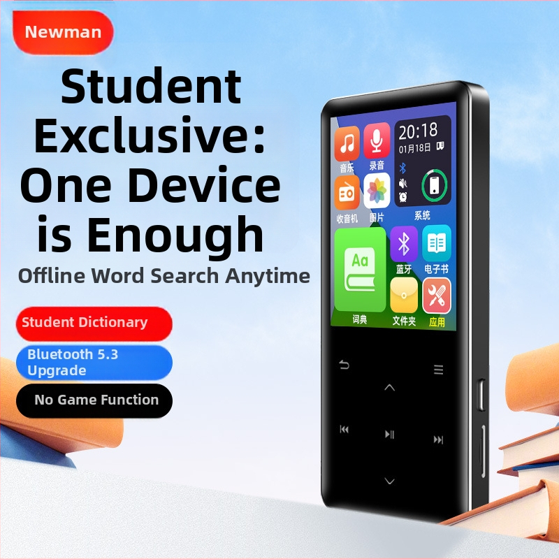 Newman A22 Walkman versiune pentru studenți, sunet HD, player MP3 cu Bluetooth, înregistrare, radio FM, dicționar și e-book