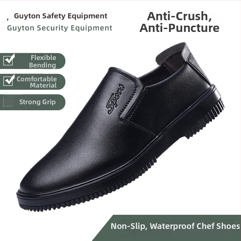 Pantofi de lucru pentru bucătărie din piele microfibră, vârf din oțel, talpă joasă, impermeabili, anti-derapare