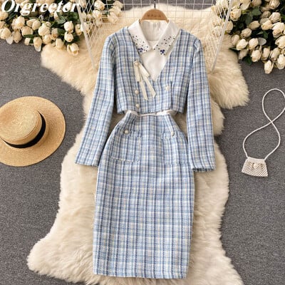 Badu nu este responsabil pentru cumpărarea de Rochie elegantă din tweed în carouri albastre OL Set două piese Crop Top Jachetă scurtă pentru femei + Rochie cu mărgele mozaic până la genunchi De la Seturi damă În afara formularului de comandă.