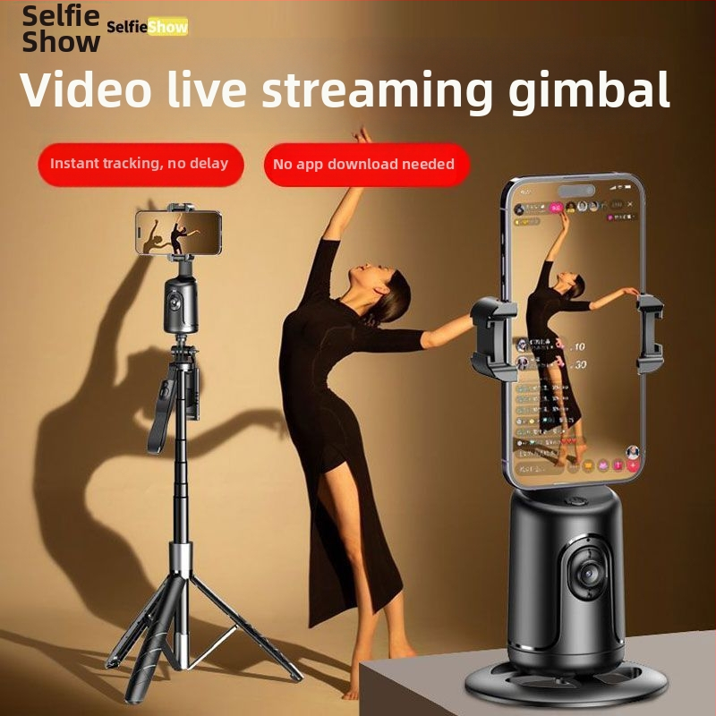 Selfie stick cu gimbal AI, telecomandă Bluetooth, rotație 360°