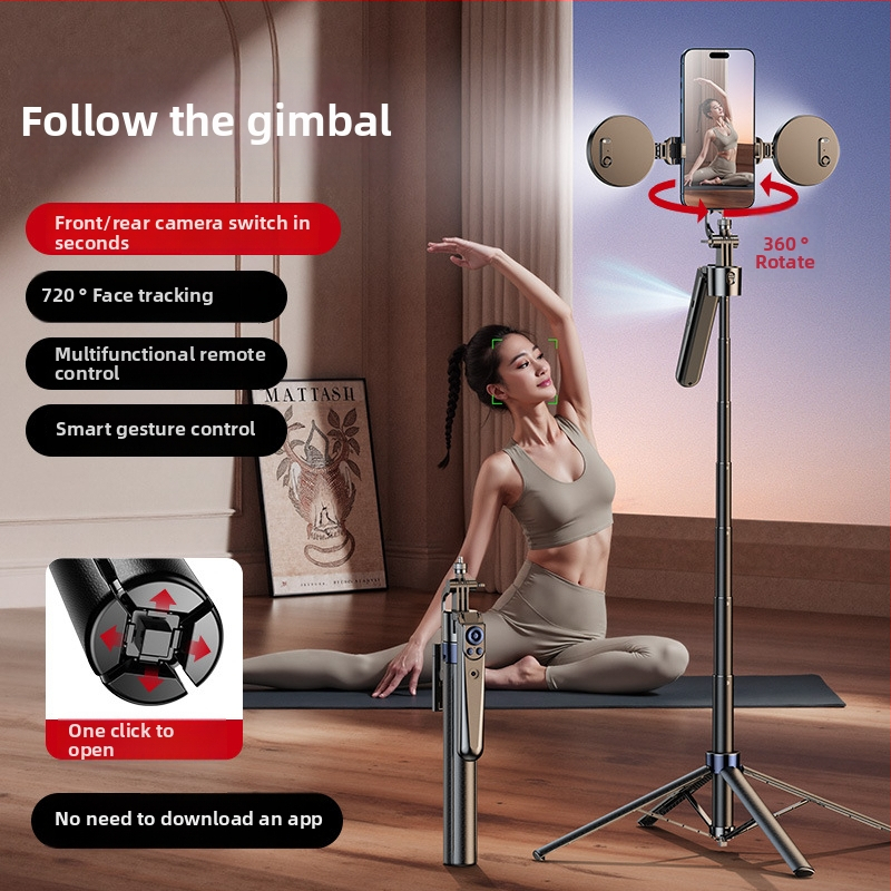 Selfie Stick Tripod cu urmărire facială AI și urmărire automată, suport telefon rotativ 360°, telecomandă, LED, Bluetooth, material aliaj de aluminiu + ABS